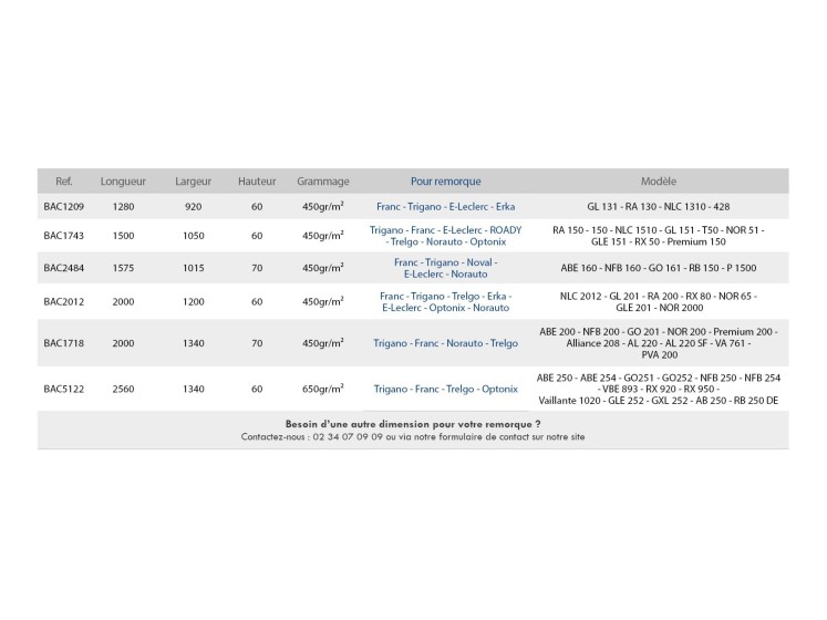 Adaptabilité : plusieurs dimensions disponibles pour s’adapter à la remorque