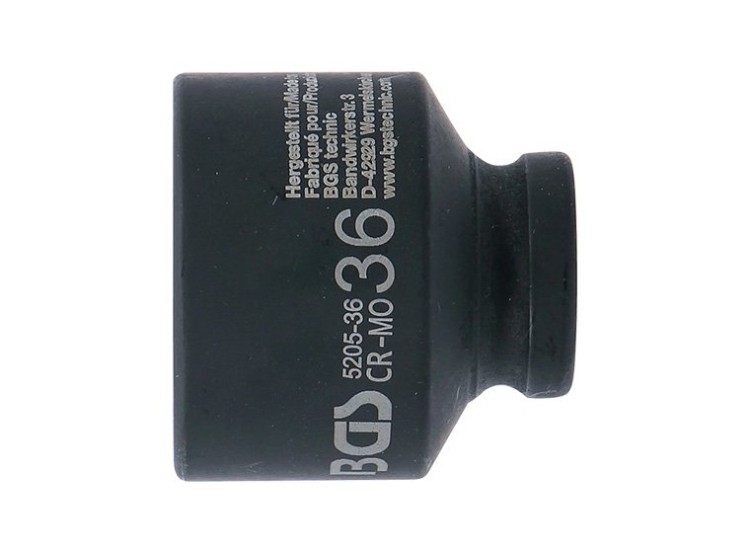 La douille à choc six pans 1/2" – 36 mm BGS est un outil robuste conçu pour le serrage et le desserrage d’écrous et de boulons de grand diamètre. Compatible avec les cliquets et clés à choc à entraînement carré 1/2" (12,5 mm), elle permet de travailler efficacement sur des assemblages mécaniques nécessitant un couple élevé.
