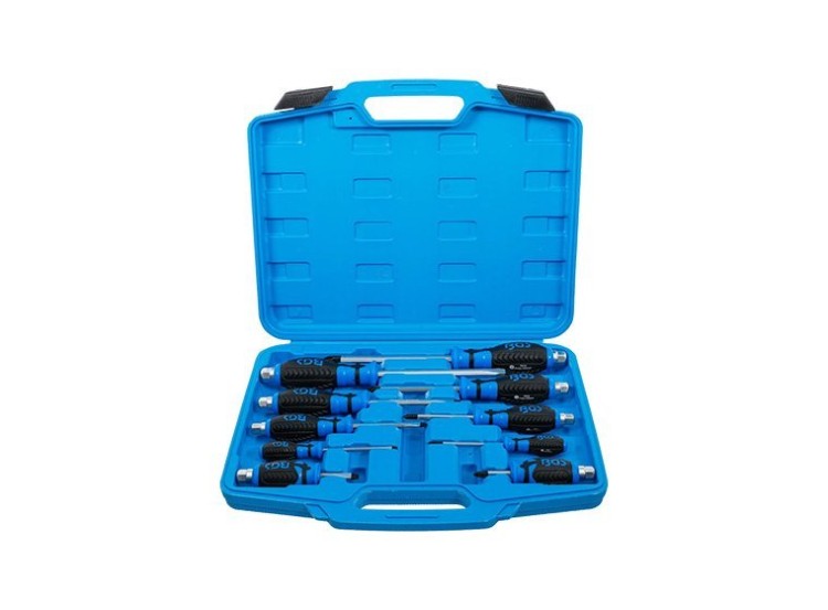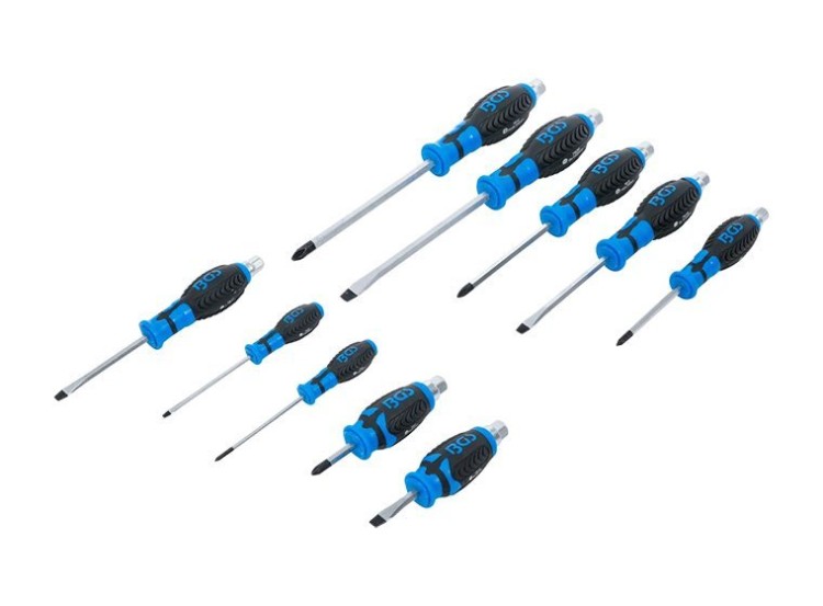 Le jeu comprend 10 tournevis couvrant plusieurs tailles et longueurs, permettant de s’adapter à différentes configurations de travail. On retrouve notamment :