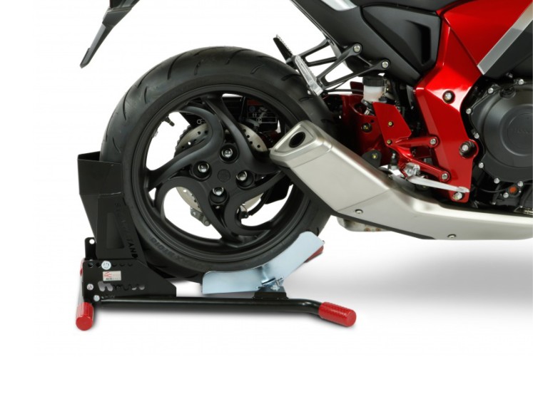 Modèle universel réglable sans outil, idéal si vous possédez plusieurs motos, possibilité de fixer la roue avant ou arrière.