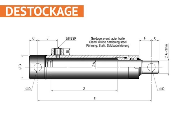 Matériaux : tube acier de précision, tige chromée (traitement anti-corrosion)